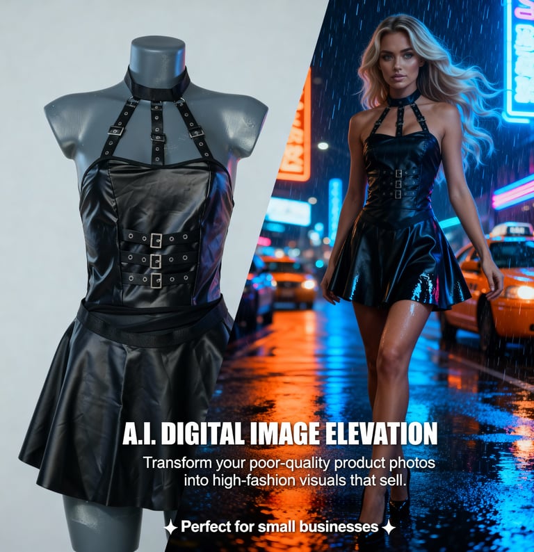 Simply send your clothing photos, and we’ll place your designs on Elara to create stunning visuals.